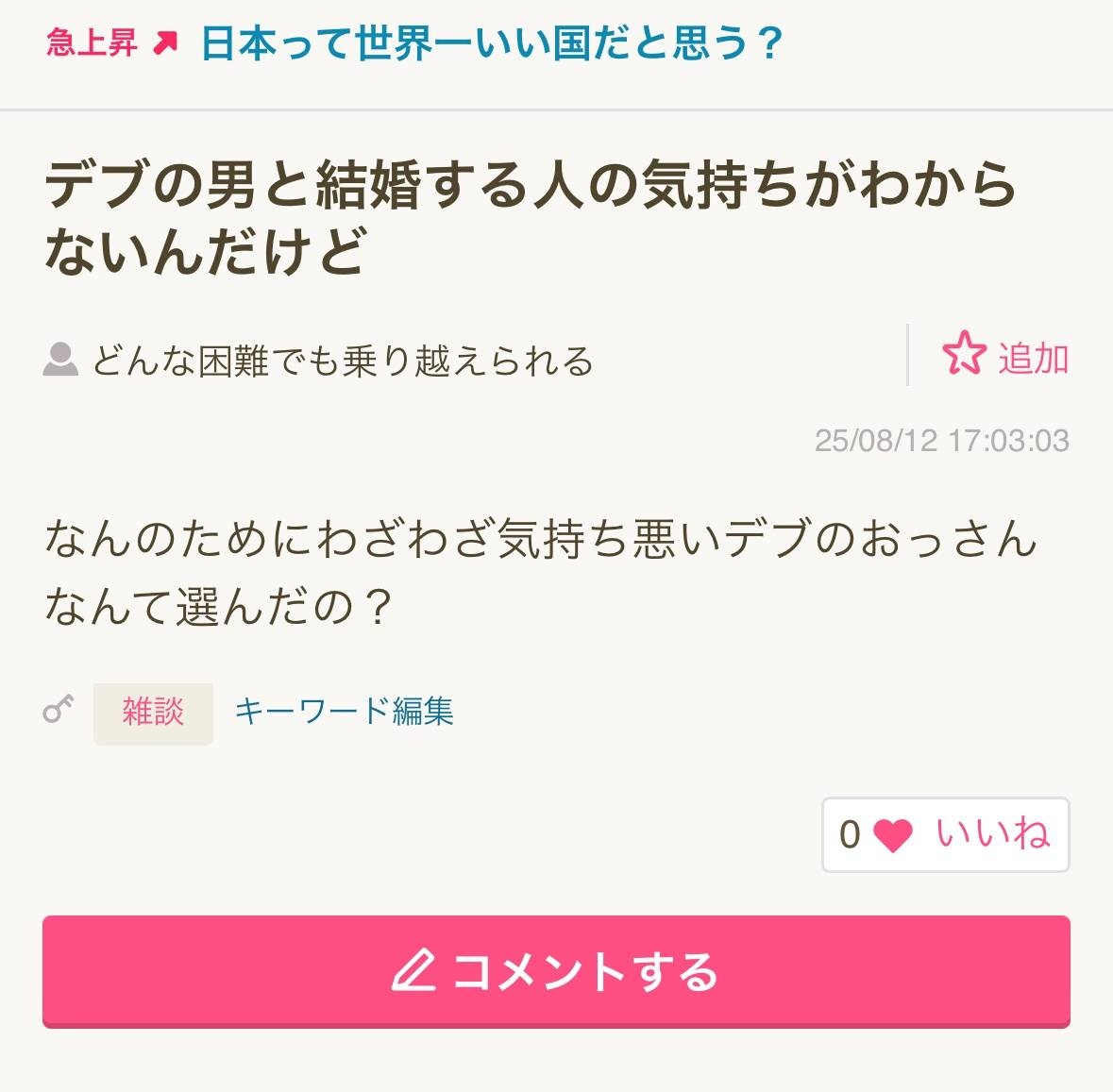 - デブの男と結婚する人の気持ちがわからないんだけど