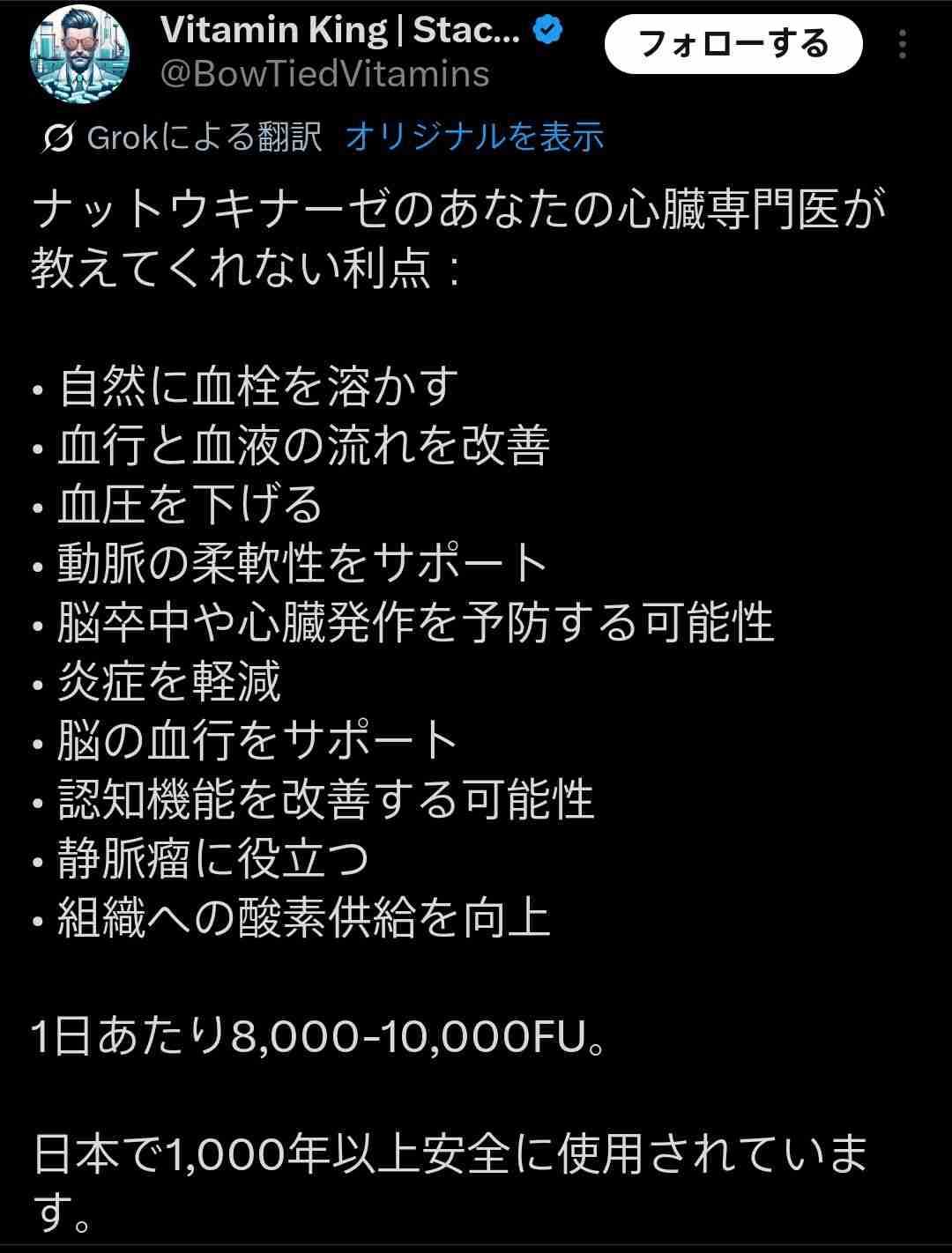 血栓に対する効果薬に比べたらゴミ同然と聞いた