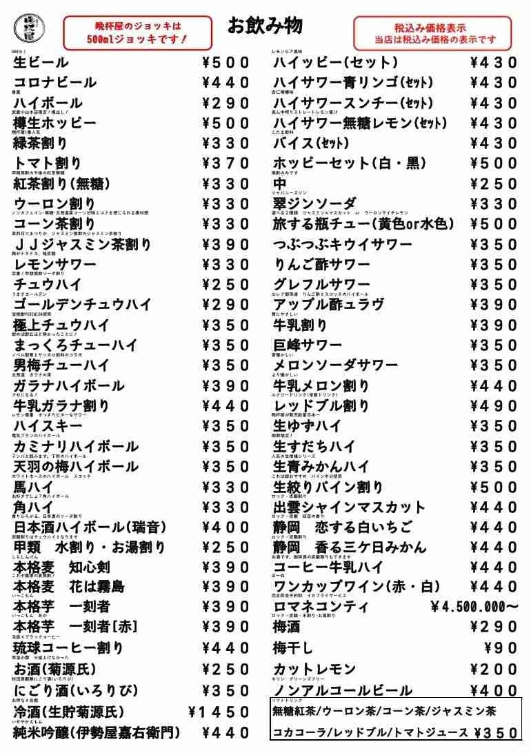 【画像】🏮晩杯屋とかいう立ち飲み居酒屋www