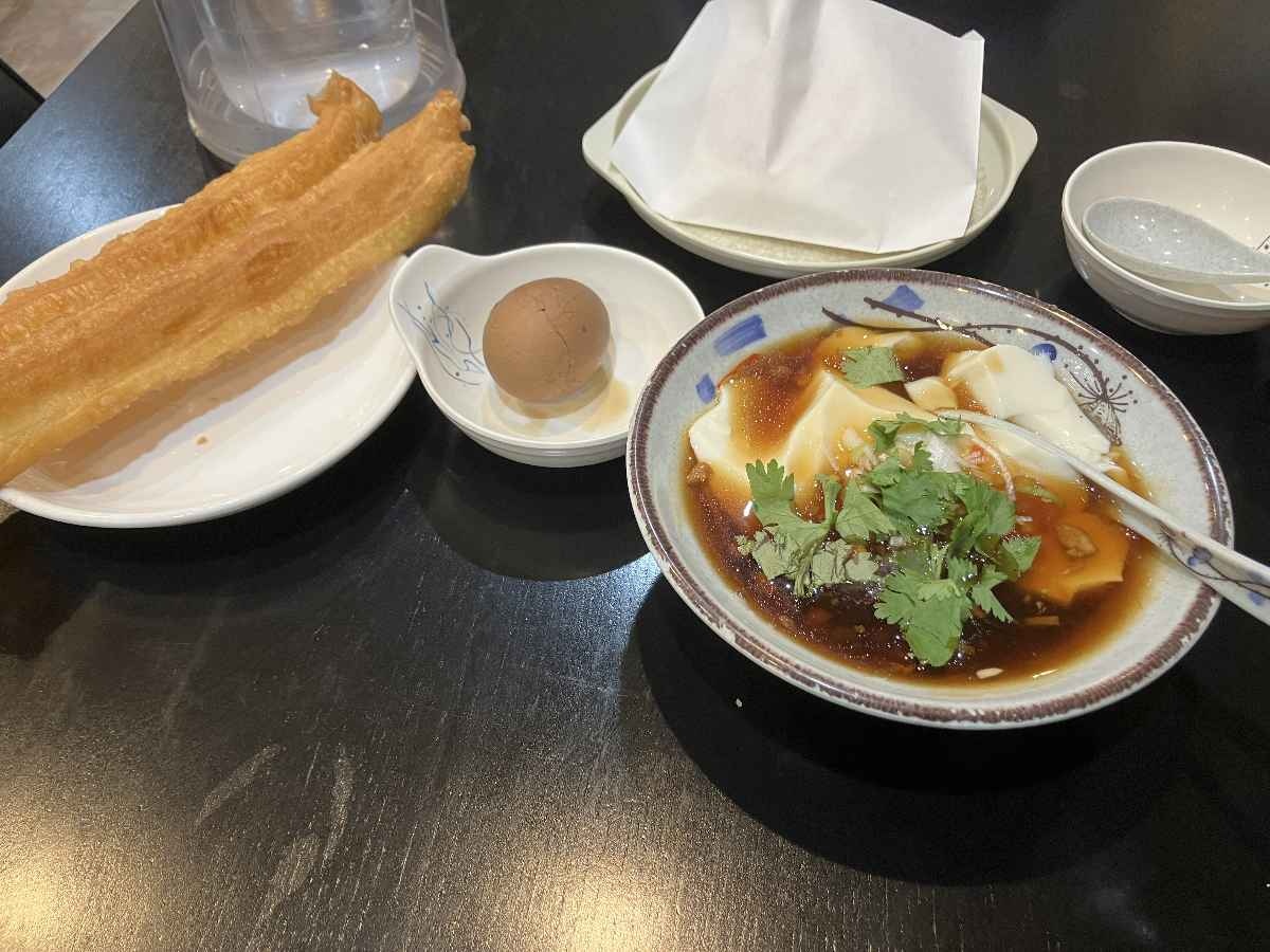 「豆腐脳(トウフーナオ)」とは、中国の伝統的な豆腐料理です。日本の「おぼろ豆腐」や「絹ごし豆腐」に似た、非常に柔らかく滑らかな豆腐に、塩味や甘味のタレ、具材などをかけて食べます。地域や好みによって、醤油ベースの savory な味付け(醤油、ごま油、ラー油、ネギ、パクチーなど)と、甘いシロップやあんこなどを使ったスイーツのような味付けがあります。