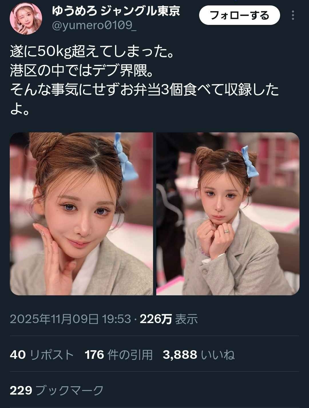 【画像】激かわ港区女子「50kgこえちゃった♡これじゃおデブちゃんだよ~(パシャリ)」