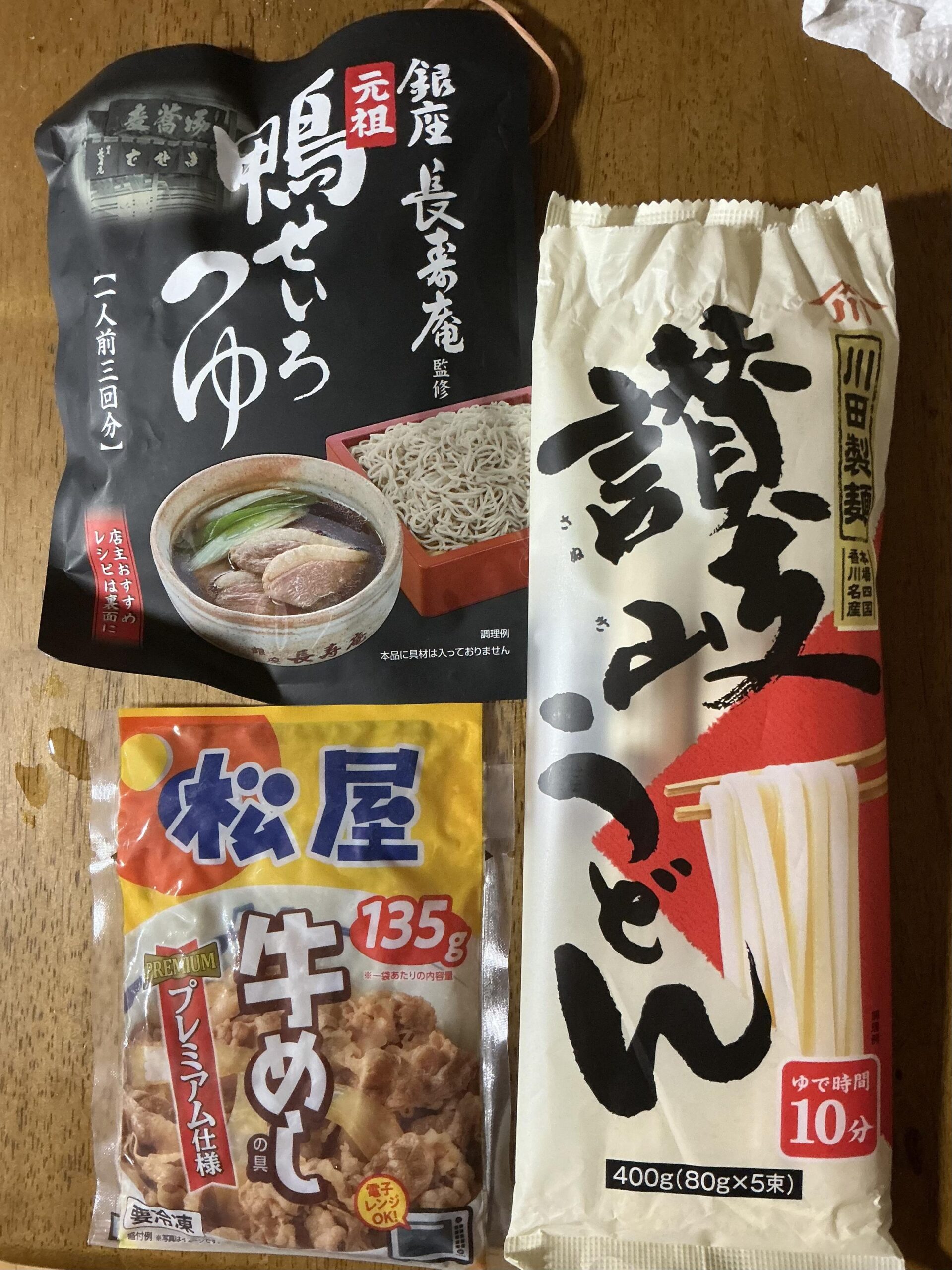 鴨せいろのつゆにうどん入れてインスタント牛丼ぶち込んだのか…
