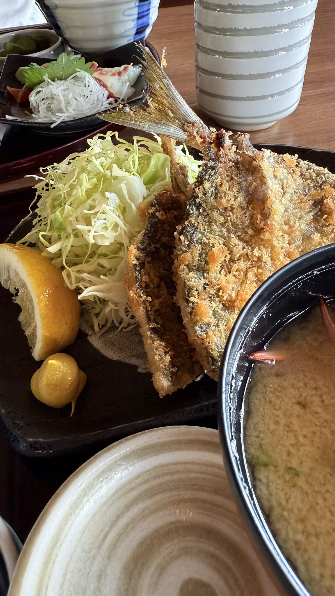 - でも定食屋で食うアジフライって美味いよね