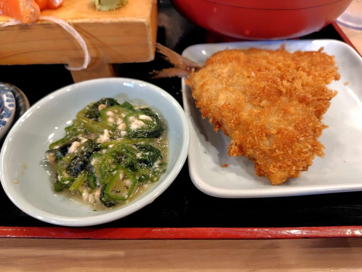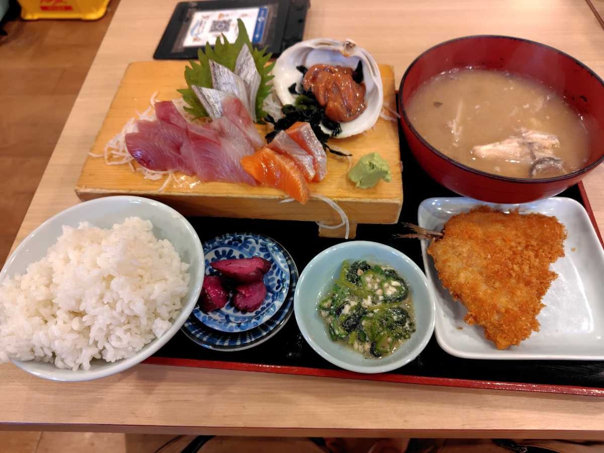 刺身も汁も小鉢も美味そうだけどフライはなんかいい加減だな