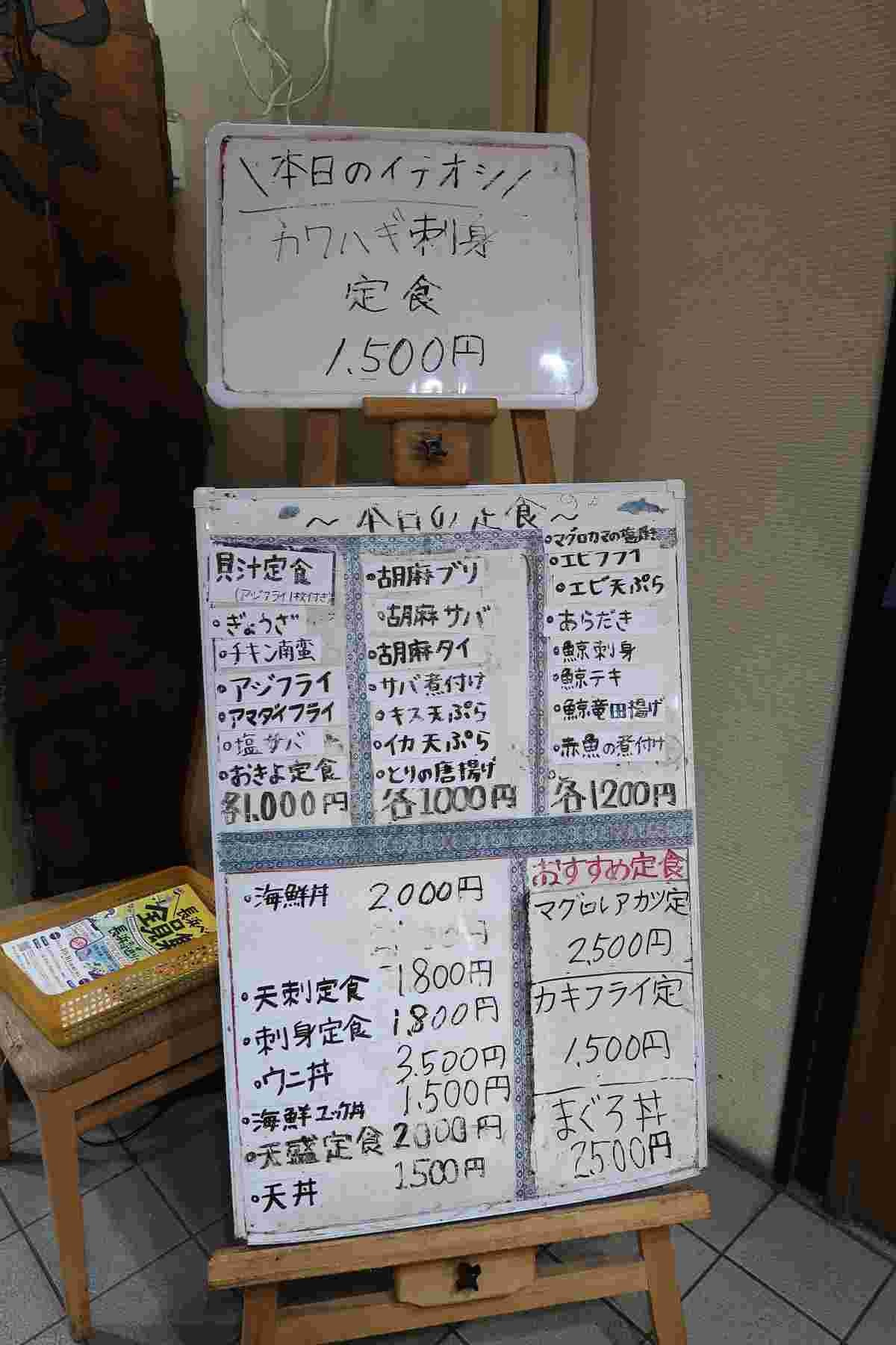 - 刺身定食1800円税込と胡麻サバ1000円税込とのこと
