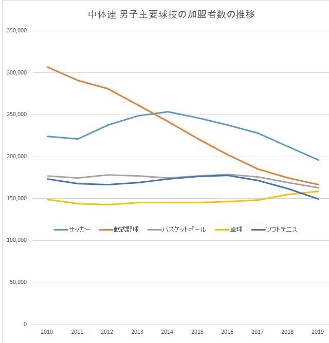 なんならこれ2019年までのデータやけどそれ以降はサッカー人気落ちた影響でサッカーの方が減少えげつないからな