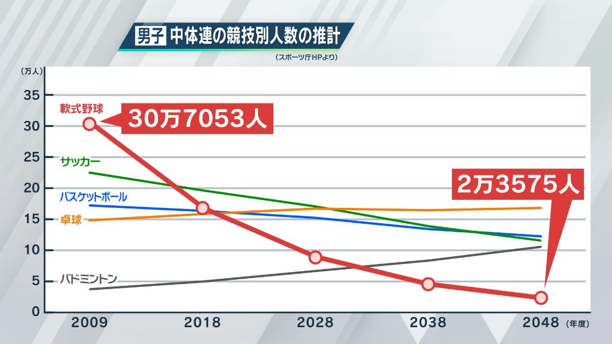 中学硬式人口は約5万3000人。2007年の約4万3000人から微増しているが、