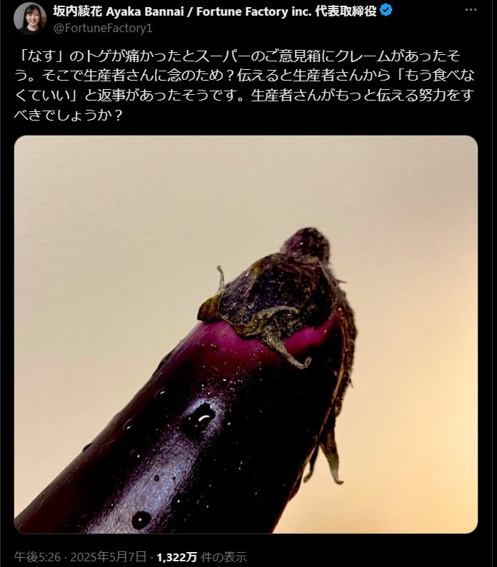 【石破農家】 「なすのトゲが痛かった」と農家に伝えると「もう食べなくていい」と傲慢な返答が