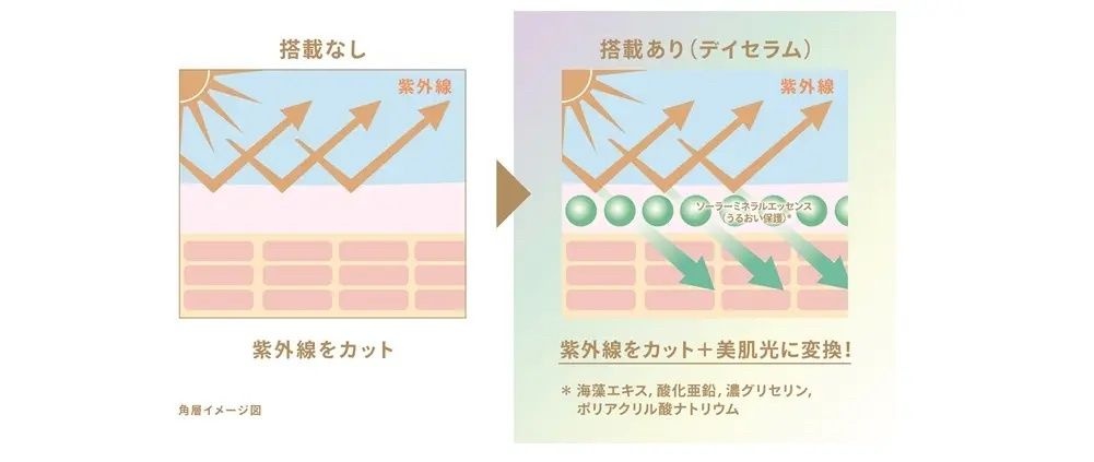 (1)紫外線をブロックすると同時に、太陽の光を美容効果のある光に変換する革新技術「サンデュアルケア」のキーエッセンスが進化