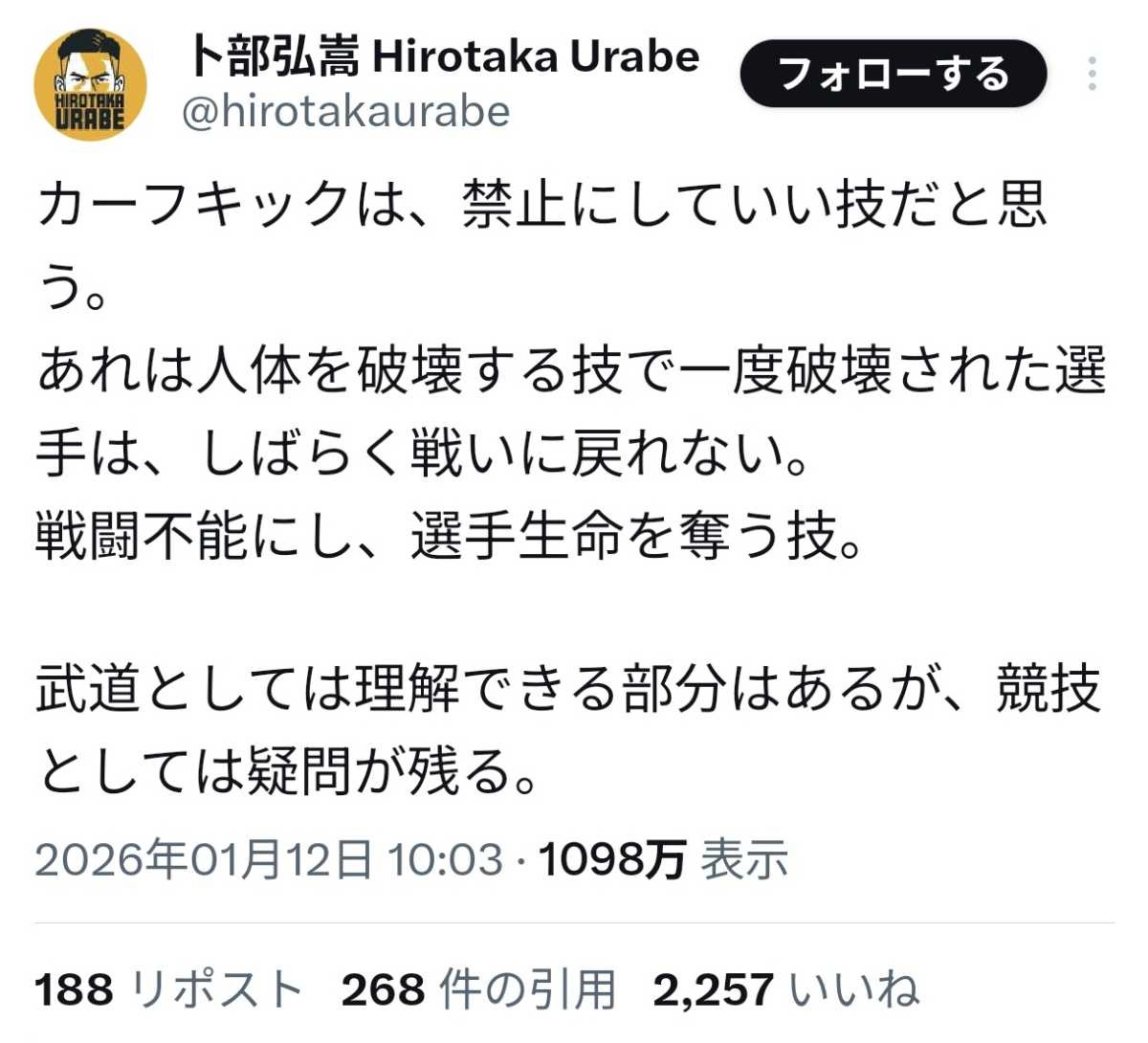 【賛否】元プロ格闘家「カーフキックは人体破壊技、禁止するべき」
