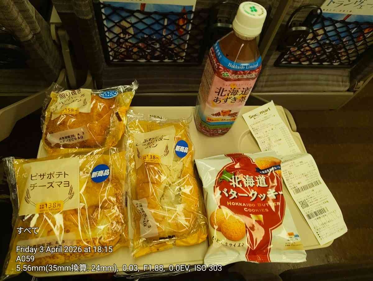 【超速報】セイコーマートで買った食べ物と飲み物を新幹線の中で並べた…【超衝撃】