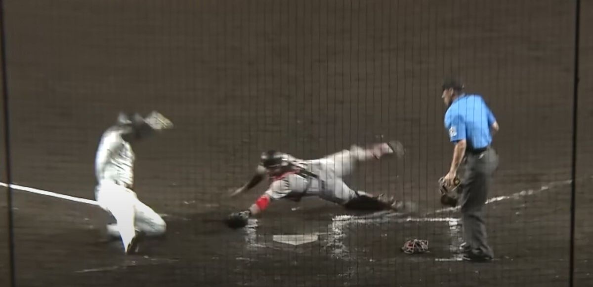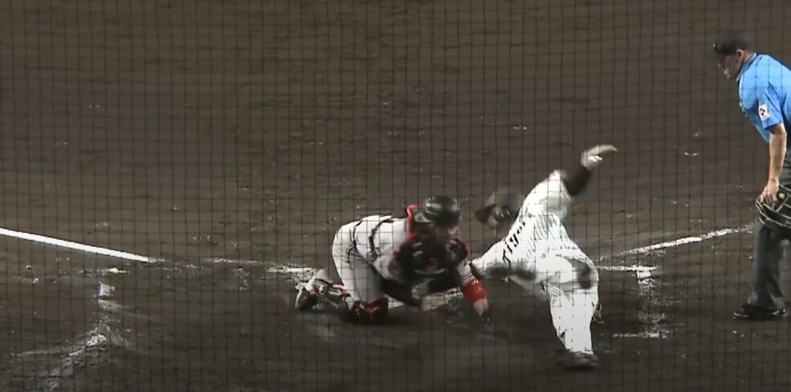 本塁ベースじゃなくて捕手にぶつかりに行ってる