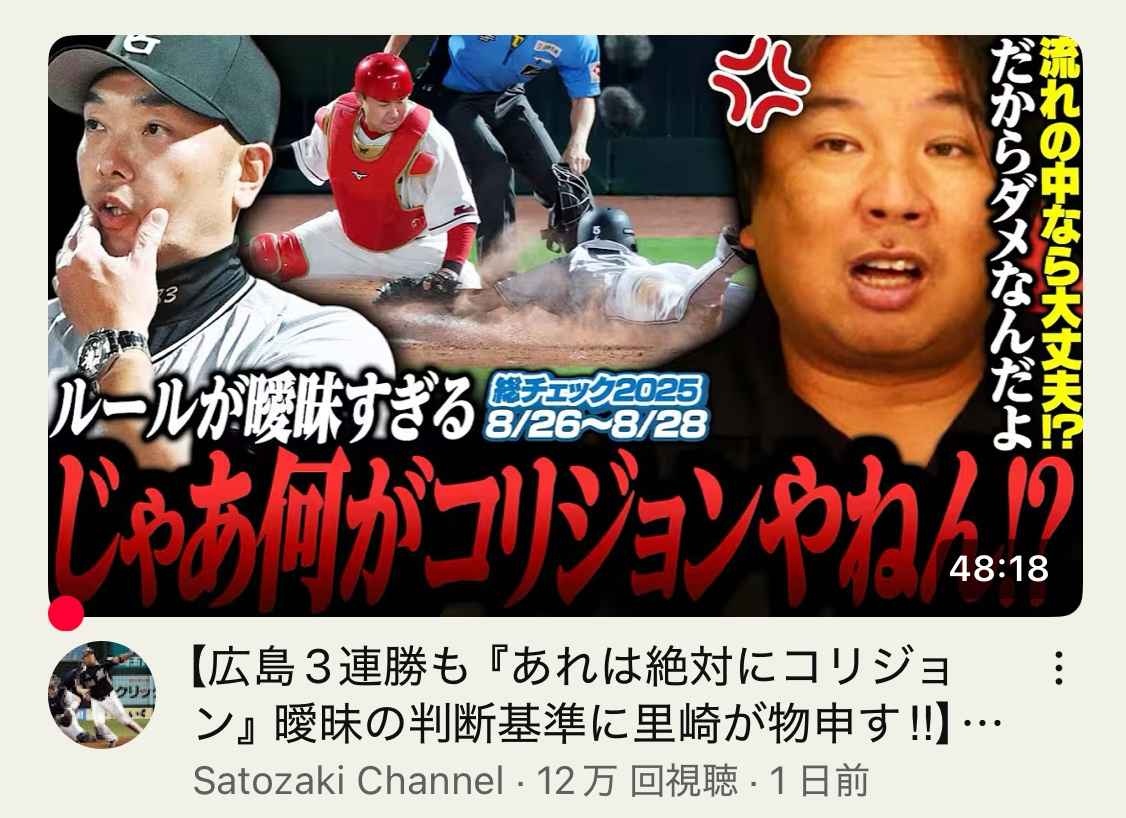 どしたんや? 終わったのはコリジョンルールやろ 広島擁護審判のせいで - 7 : 2025/08/30(土) 13:28:17.420 ID:aWuiUolEN