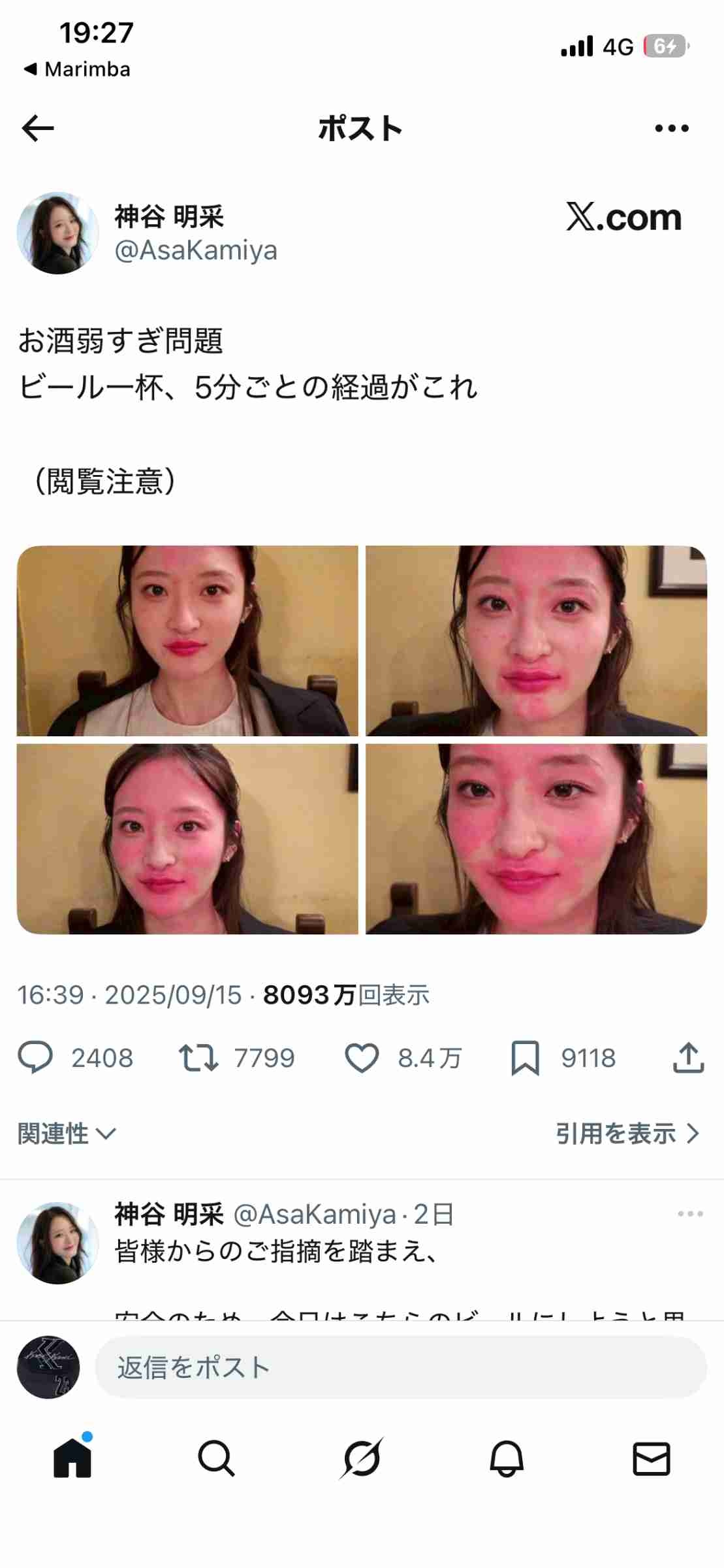 【閲覧注意】ミス東大「お酒飲むと顔が真っ赤になっちゃうの!」←想像以上に真っ赤だったw