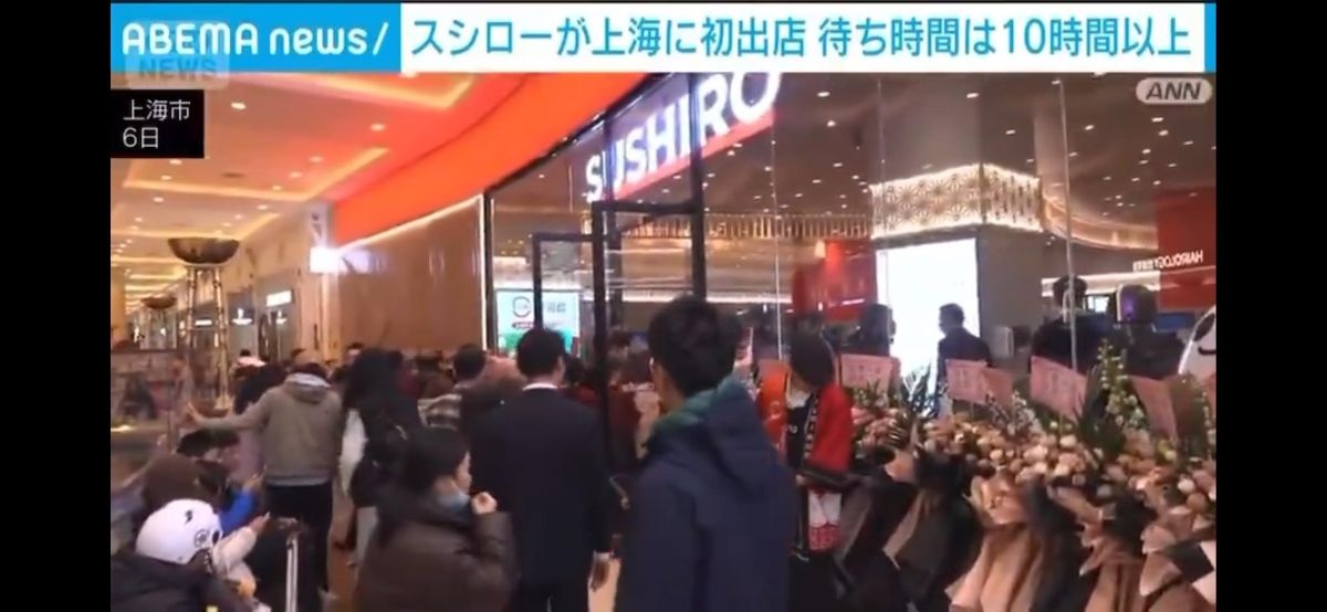 「スシロー」中国・上海に2店舗開業、14時間待ちの盛況に