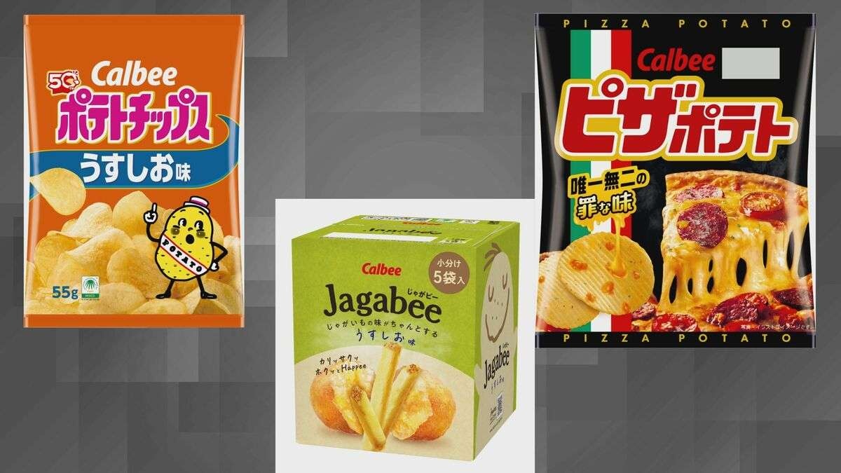 対象となるのは、主力の「ポテトチップス うすしお味」や「ピザポテト」のほか、「Jagabee」などあわせて17品目です。値上げは6月1日の納品分からで、値上げ幅は最大30%程度となります。