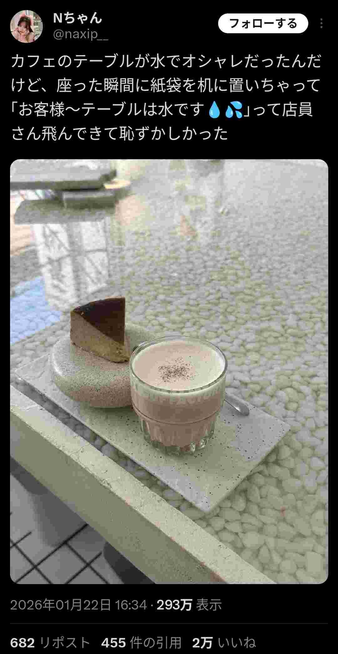おしゃれカフェさん「テーブルを水浸しにしたらエモそう」→女がテーブルの上に鞄を置きバシャーンwww