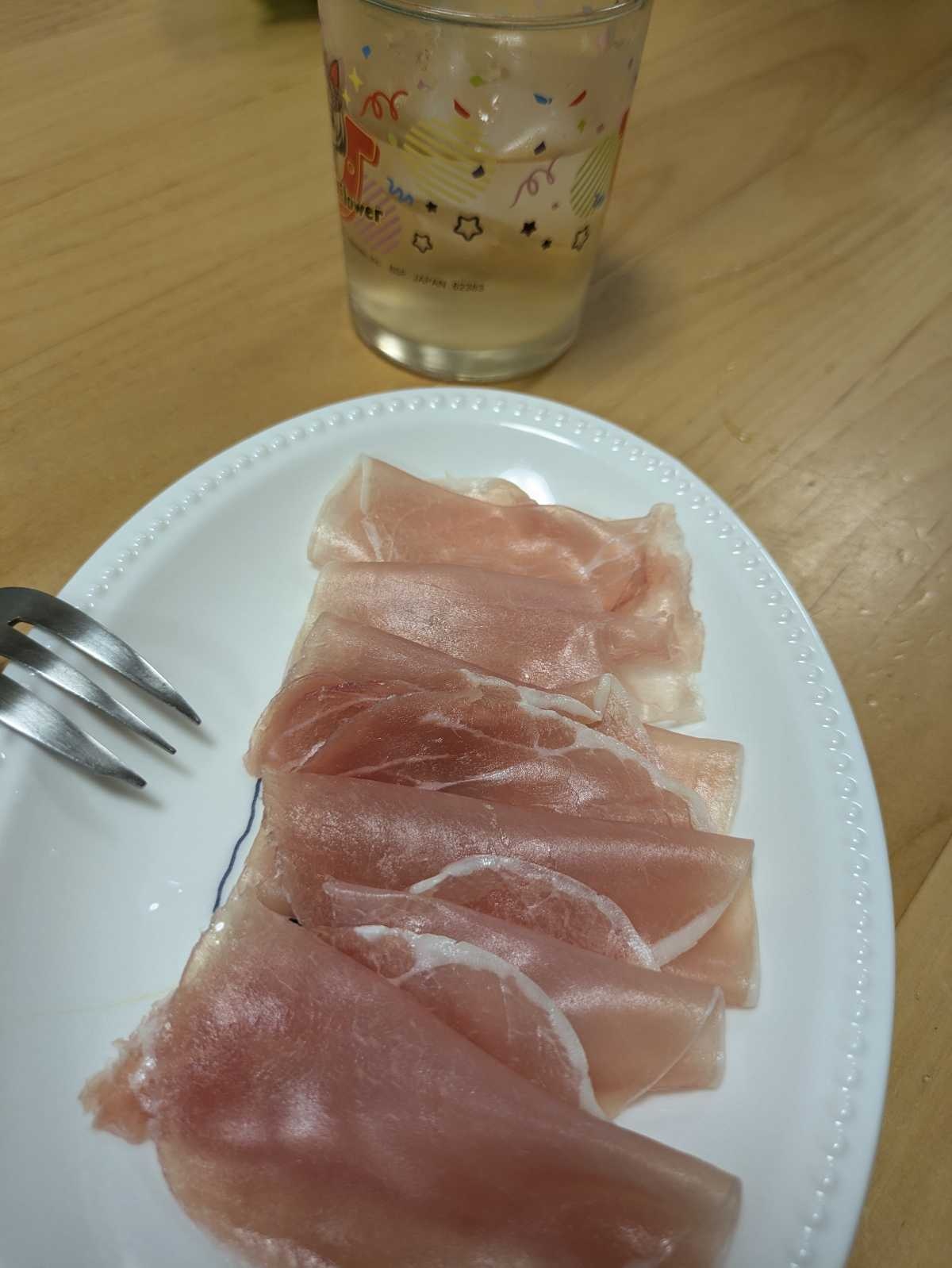 言うてもセブンの生ハム200円をカルディの安いロゼで流しとるだけやで
