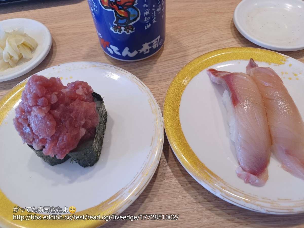 - がってん寿司美味いよなちょい高いけどネタ大きめだしこっち行くようになったわ毎回鯛は頼んでる
