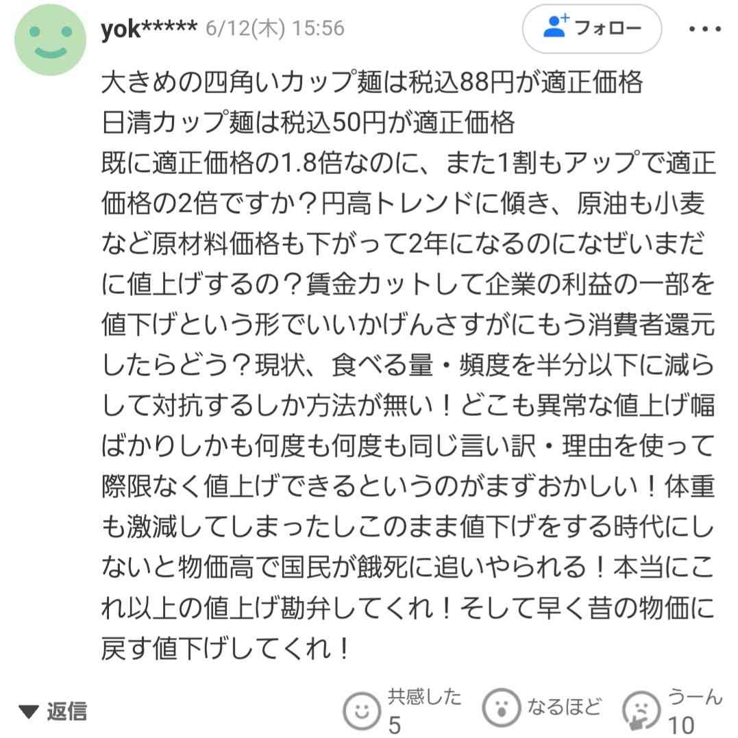 - 安いから買ってるだけで値上げしたら買わねーよあんなクソまずい焼きそば