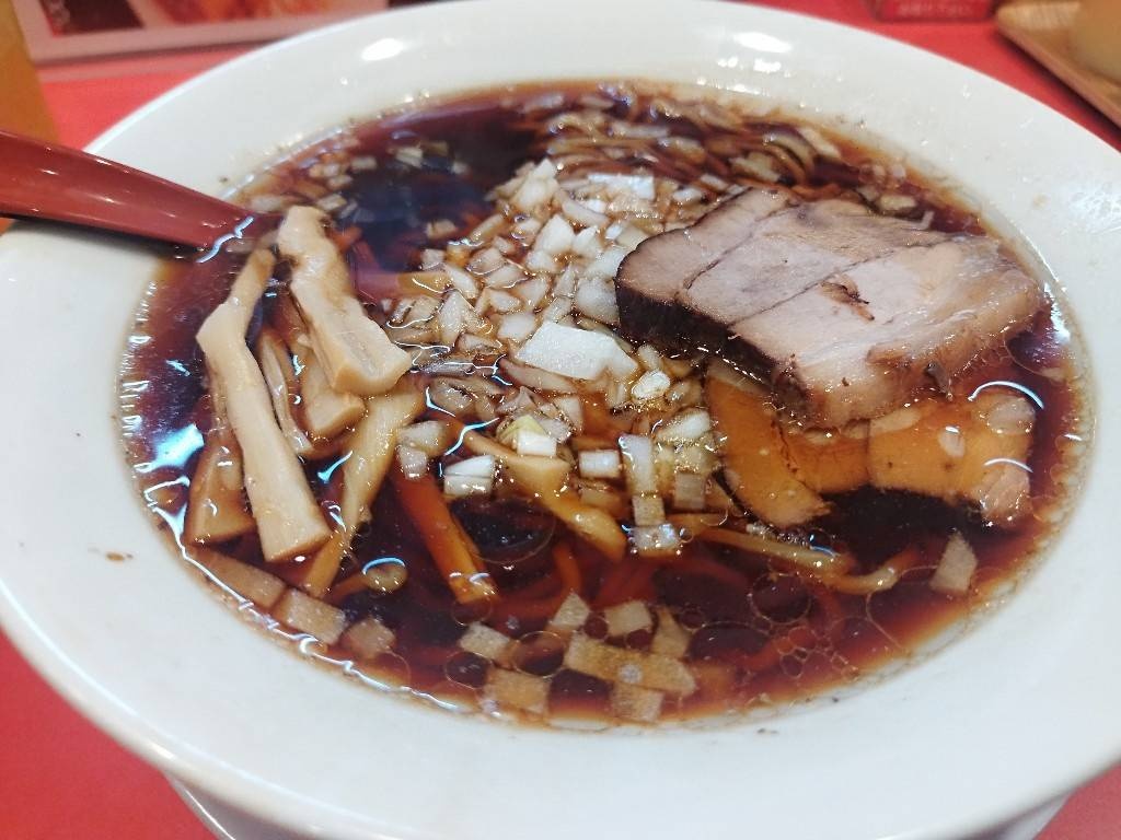 真っ黒い醤油スープに刻みタマネギくらい?