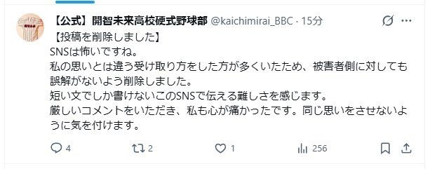 とある野球部公式「たった数人の、たった一度の過ちでこんなにも素晴らしい野球部の評価が変わるのが怖い」 日大三高事件に言及後、削除