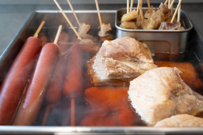 香川の食文化に根付く「おでん文化」を継承する「肉系おでん」もお目見えした。「にんにくマシマシだれ」「キムチ」など刺激的なトッピングを添えて味わう。