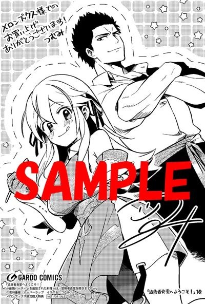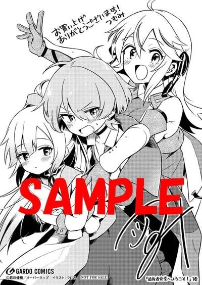 「追放者食堂へようこそ!」は冒険者集団・銀翼の大隊を追放された料理番のデニスが、同じく自分の居場所から追放され絶望していた少女・アトリエとともに食堂を営む物語。曲者ぞろいの客たちを至高の料理スキルで魅了しながら、持ち前の腕っぷしで心までも癒やしていく。単行本には描き下ろしマンガと書き下ろし小説が収録された。