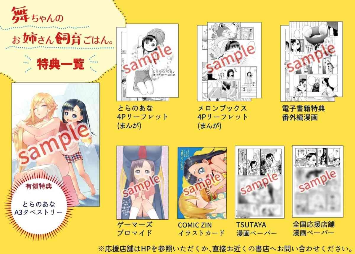 「舞ちゃんのお姉さん飼育ごはん。」は料理上手な小学生・五十嵐舞が、美人だがコミュ力も生活力もゼロな16歳のひきこもり小説家・三家環のお世話をする“バブみグルメコメディ”。家の前で行き倒れていたお姉さんにご飯を作り、濡れた髪を乾かしてあげているうちに「いっそこのまま飼えちゃったらいいのに」という思いが湧き上がり、舞は自分の中に芽生えた奇妙な感情に動揺。餌付けされたお姉さんと世話好き少女の秘密の関係を描く。