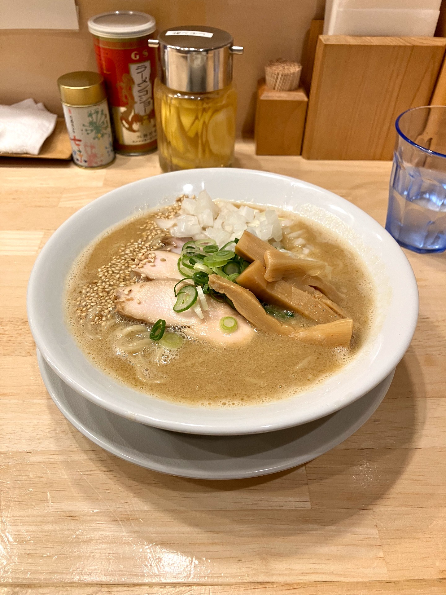 ラーメソの写真撮るときはコップとおしぼりを画角から外せ
