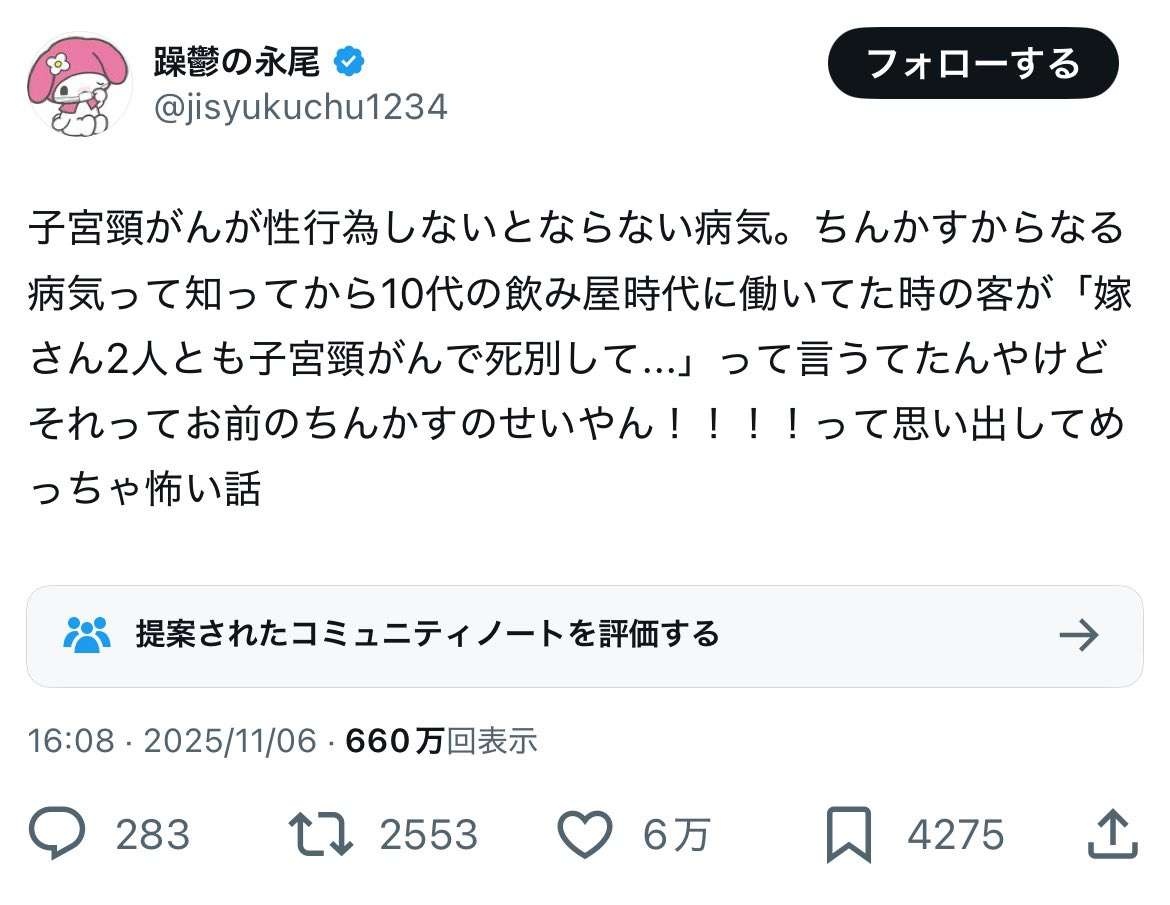 まんさん「子宮頸がんはチンカスからなる病気!!!」万バズ