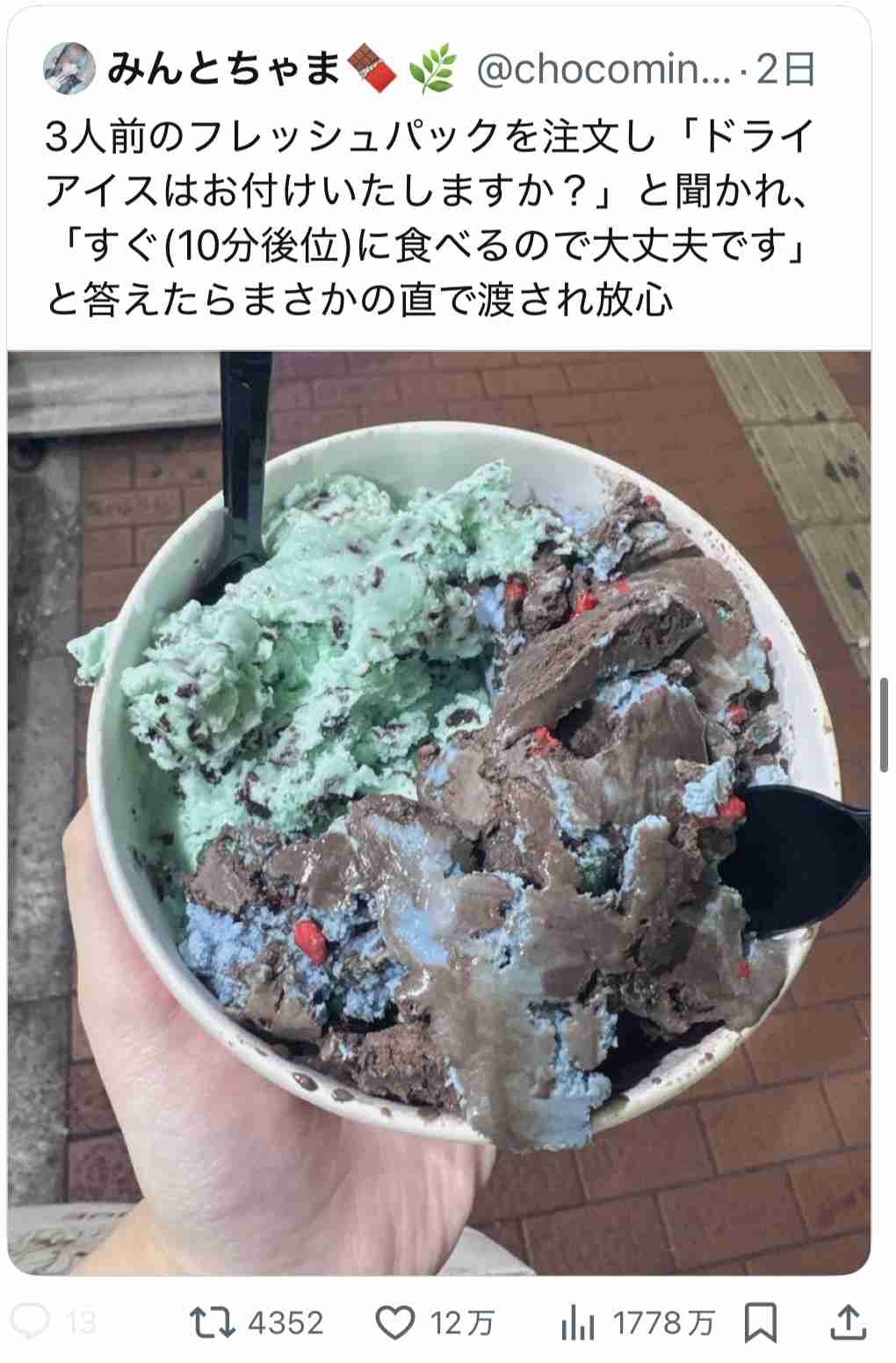 - ドライアイス付けるか聞いてすぐ食べるから大丈夫って答えたらそのまま渡されて当然じゃん?