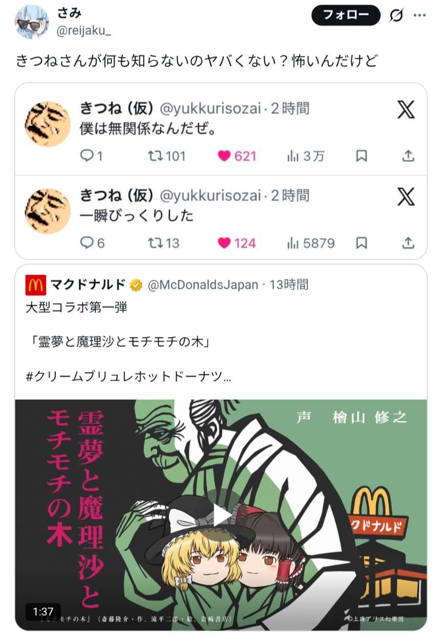 - マクドナルドが炎上した方が嬉しいからワイはこのキツネとかいうやつに味方するやで!