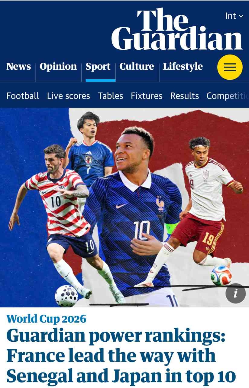 https://www.theguardian.com/football/2026/apr/01/guardian-power-rankings-france-senegal-japan-top-10-world-cup-2026 - 9 : 2026/04/02(木) 23:05:58.055 ID:odVo2bbTa