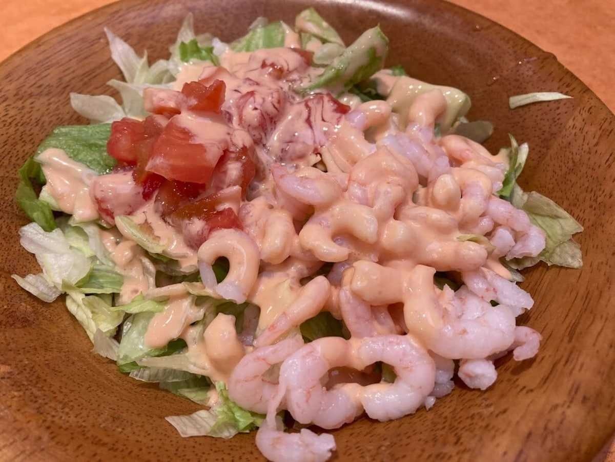 - 小エビのサラダ毎回頼むけどエビとドレッシングの量にむらがあるのなんなんあれ?