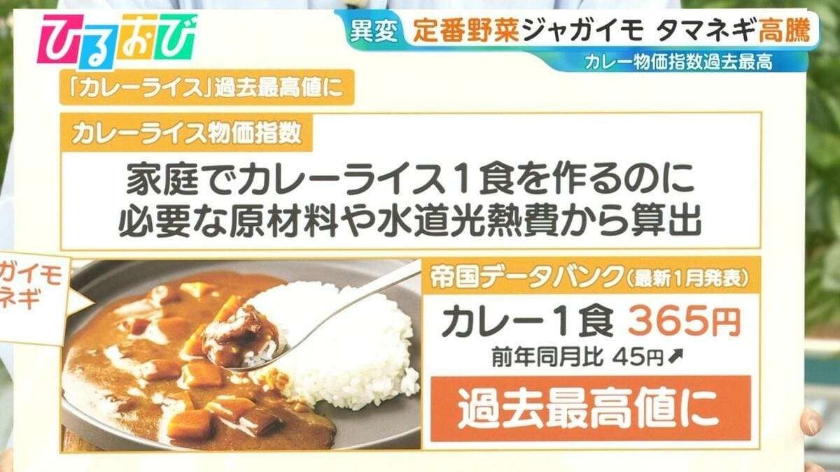 “カレーライス物価指数”1食「365円」に!定番ジャガイモ&玉ねぎ「今シーズンずっと高値」【ひるおび】|ニフティニュース