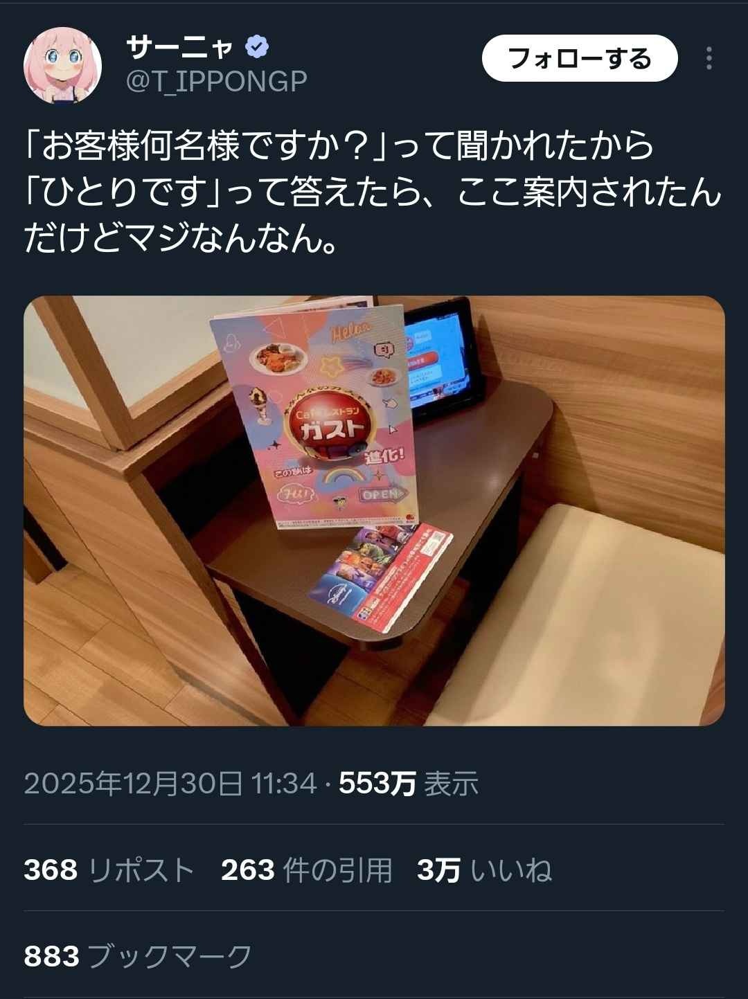 - そもそもファミレスって1人で行くとこじゃないやろ草