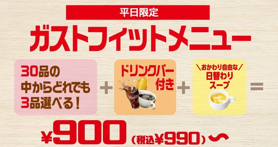 ガストさん「コスパ重視」のランチ(990円)を始める