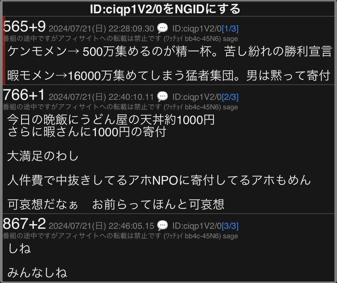 - 👴「ケンモメンは500万集めるのが精一杯の苦し紛れ、暇モメンは16000万集める猛者集団」
