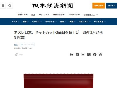 - ネスレ日本は26日、チョコ菓子「キットカット」2品目を値上げすると発表した。2026年3月2日以降の納品分が対象で、キットカットの「カカオ 72% 10枚」と「鉄分補給 with ミロ 10枚」はいずれも希望小売価格が777円から1015円へと引き上がる。