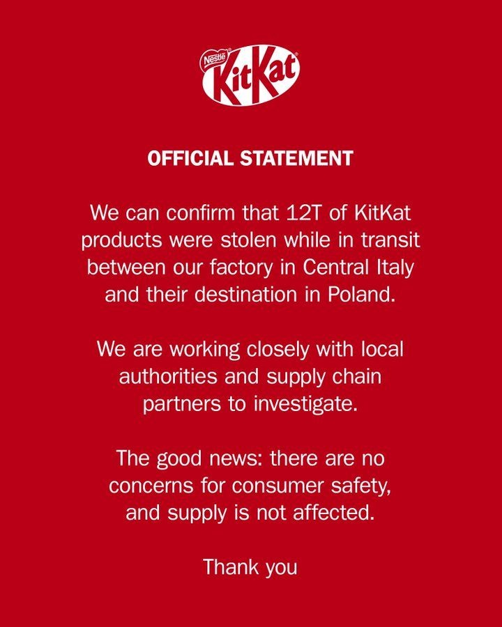 キットカット12トンが盗まれる 闇キットカット流通か
