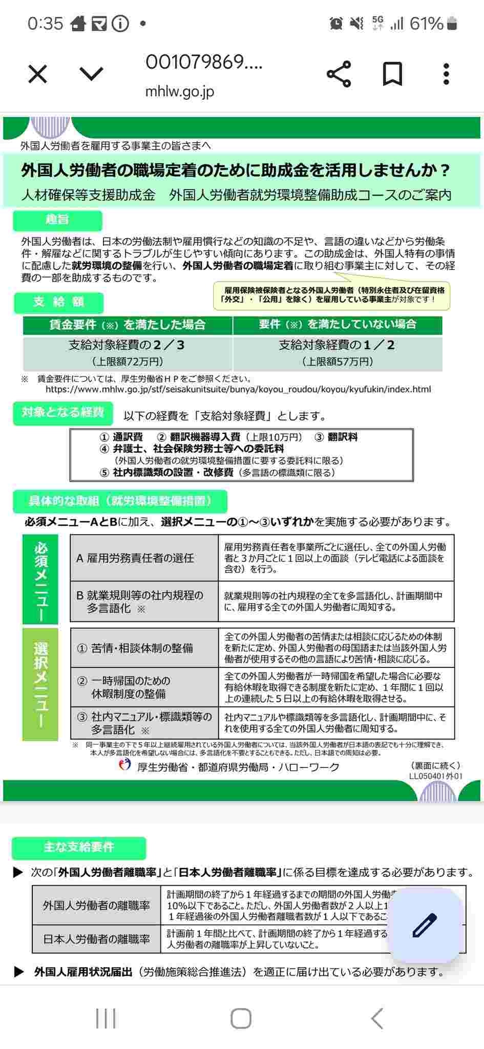 ちなこのバカの言ってる『72万』は働きやすい環境作りにかかった費用のうち2/3まで負担するよってことなので『外国人特権』でも『コメダが72万円貰える』も正確ではありません