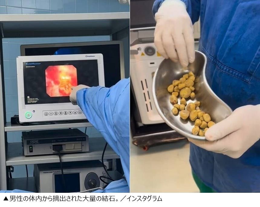 - ブラジルのミナスジェライス州に住む60代の男性は、約4カ月にわたって排尿障害に悩まされ、病院を訪れた。超音波検査をしたところ、膀胱結石が確認され、2時間にわたる開腹手術の末、さまざまな大きさの結石35個を摘出した。結石の総重量は600グラムに達したという。