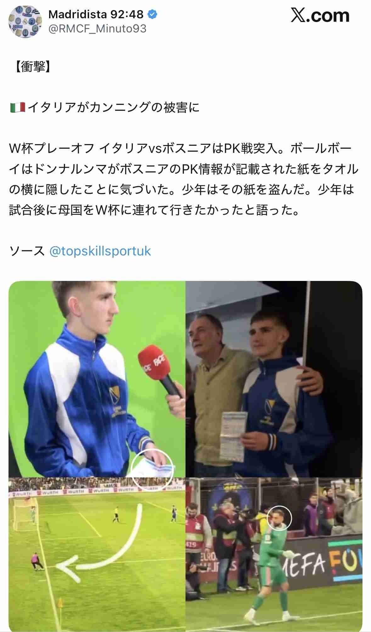 ドンナルンマがボスニアのキッカーの癖とかが書いてあるカンペを仕込んでいた