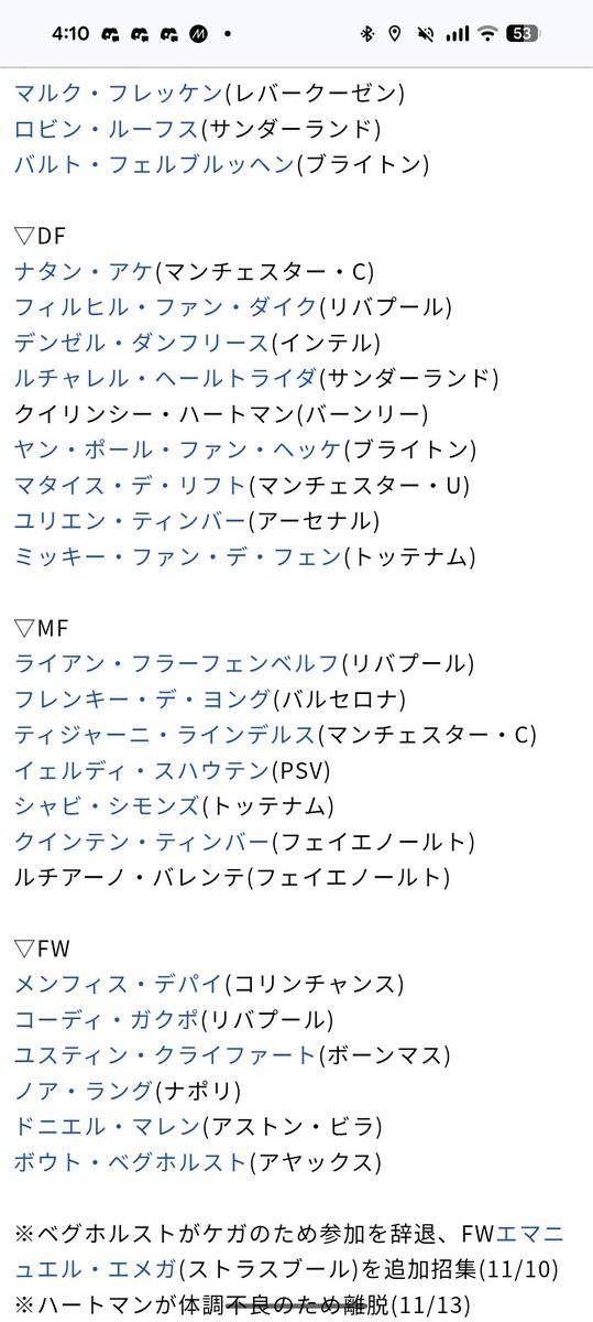 - オランダ代表のDF陣オランダリーグでプレイしてない定期