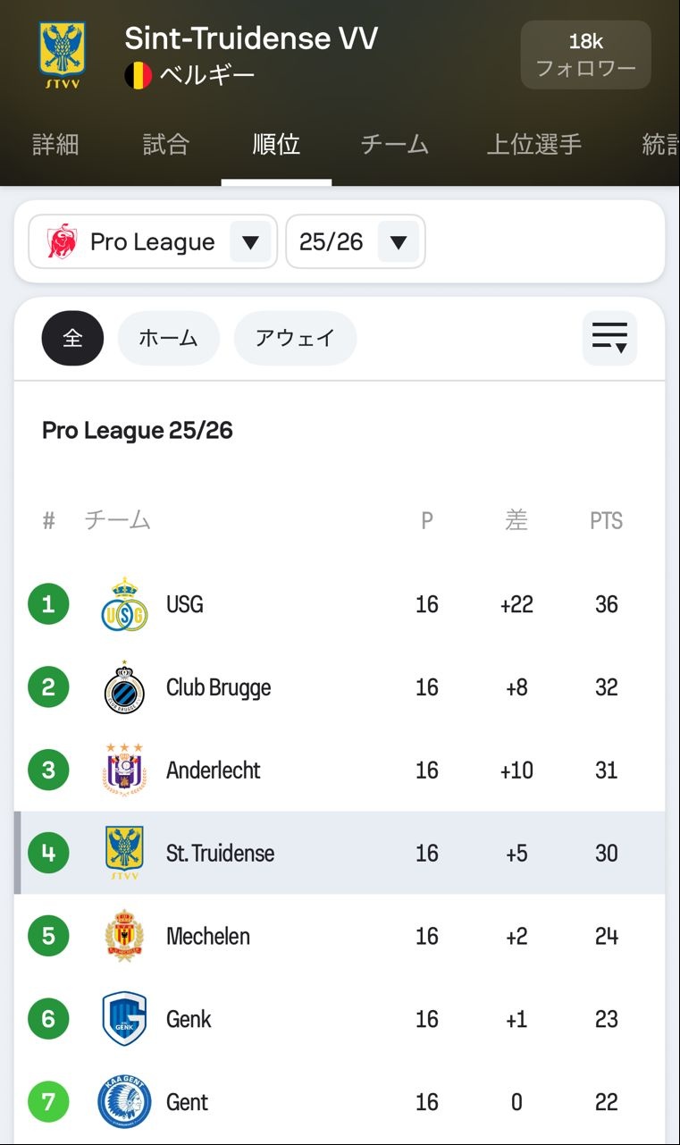 🇧🇪ベルギーリーグ第16節
