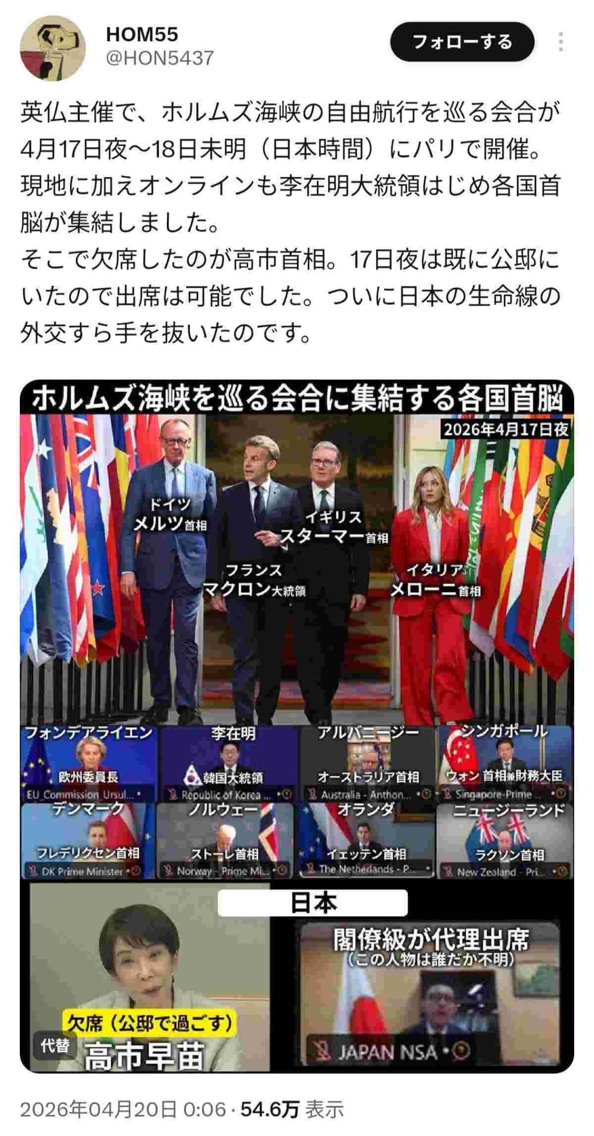 もろユダヤ側のマクロンは来ちゃ駄目だろ - 75 : 2026/04/24(金) 04:31:55.669 ID:E3igs51yn