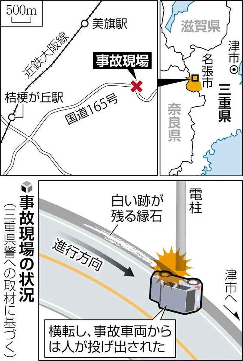 事故は3日未明、名張市の山あいにある国道のカーブで発生。車は定員(4人)を超える男女6人が乗り、カーブを曲がりきれずに横転した。