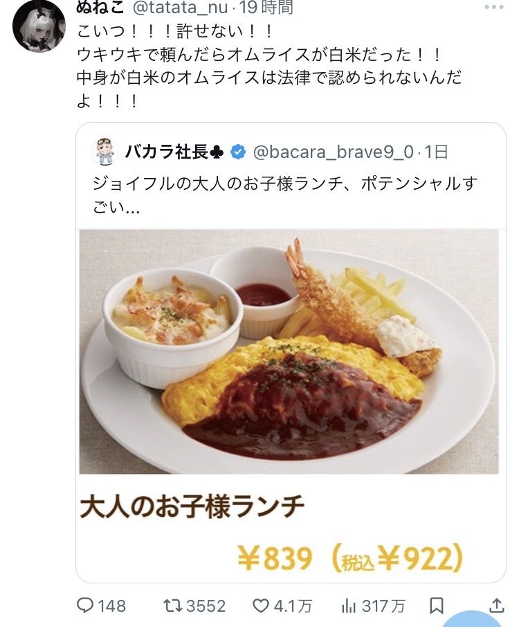 ジョイフル本田、オムライスの中が白米で大炎上www