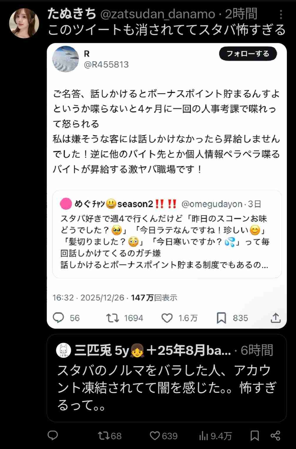 スタバの「コネクト」ノルマを暴露したTwitterアカウント、凍結されてしまうwww